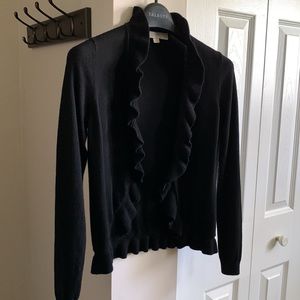 LOFT Black Ruffle Trim Cardigan PXS