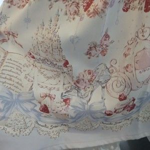 Excellent condition with no noticeable flaws! This is so rare and I'm reluctant to sell it... The skort is made of a thicker material than typical Liz Lisa skirts, and it has built in shorts shown last. The velvet ribbons at the front are super cute, and I love the Cinderella themed print! I think the baby blue and red/pink accents go so well together