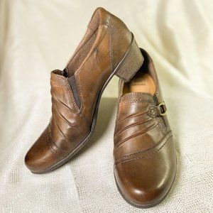 Earth Origins | Earth Shoes | Brown Gold Buckle Ankle Gypsy Style Boots Heel
