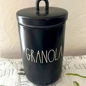 ๐Rae Dunn GRANOLA Black BN Ceramic Canister- VHTF.RARE DISCONTINUED