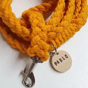 Pablo Mustard Yellow Macrame Cord Braided Dog Leash