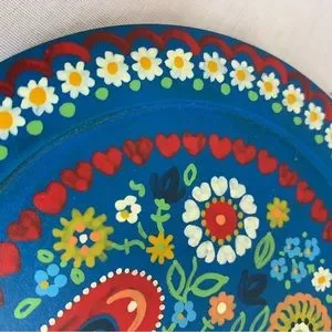 Really sweet light weight wooden plate. Hand painted, gorgeous colors and details. It measures approximately 5.75 inches across. Please feel free to ask questions, create bundles, and make offers that fit your budget!