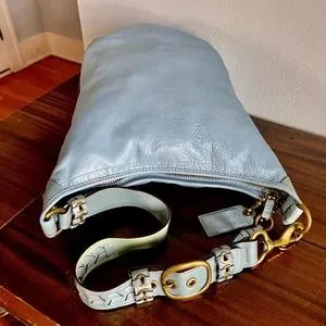 I had this exact bag. I adored the “Pool Blue” color and the finish of it!!! Unfortunately , I had to return it. Less than year, it Had the same issue with strap discoloration. I was devastated they couldn’t just replace it or re-dye it. I should’ve kept it. Yours is lovely.