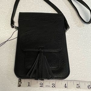 K. Carroll Harper Black Leather Crossbody Bag with a Fringe Design with Magnetic Flap Closure