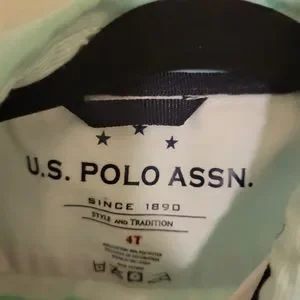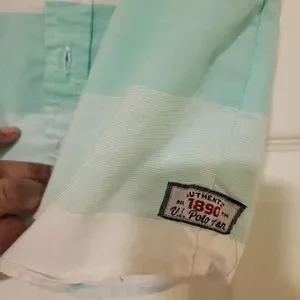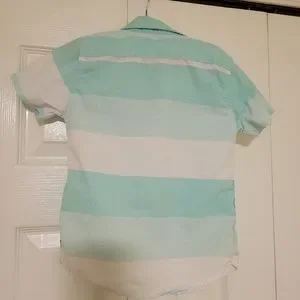 Teal blue and white stripped Polo Association button-down Short sleeve shirt. Size 4T.