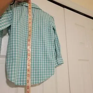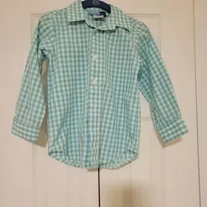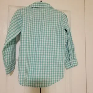 Teal blue and white plaid GoodLads button-down long sleeve shirt. Size 4T