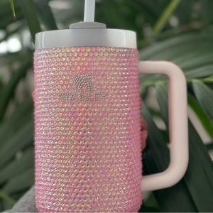 Over 4000 hand placed high quality rhinestones on original rose quartz flowstate tumbler