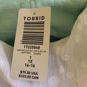 Torrid NWT White Dress with silver thread accents. Size 1xl. Waist measures 18 inches, length 33 inches
