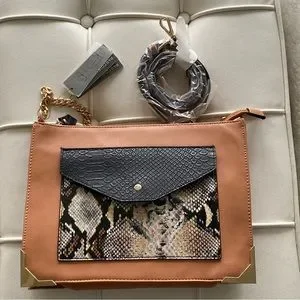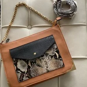 New with tags. French brand Parfois. Brown snakeskin leather purse. Gold metal chain. Comes with an extra leather strap.