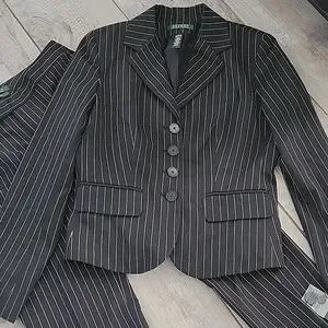 Lauren Ralph Lauren Cameron pin stripe suit in black panties 2 jacket size 4