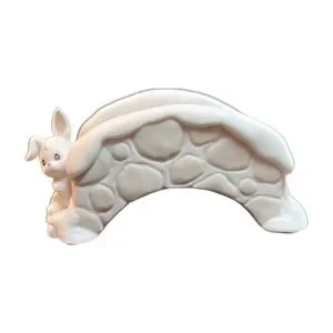 The Sugar Town porcelain bridge, #533203, 1994 with a cute bunny on one side by Enesco is a great addition to the collection.