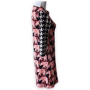 Tracy Negoshian Dress •Size: XS •Color: Red, Black •Features: Elephant Pattern, 3/4 Sleeves, Hidden Zip Pocket, Pullover Styling •Material: 95% Polyester 5% Elastane •Good Pre-Owned Condition