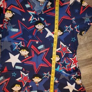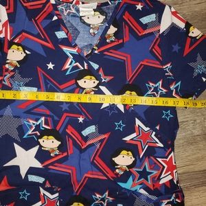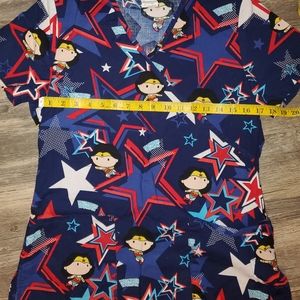 Wonder Woman Scrub Top Size Small with Red/White/Blue Stars