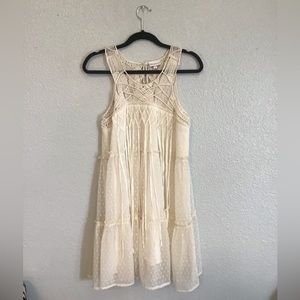 Shyanne Dress. Pretty Off White Sleeveless Dress. Tiered Skirt With Fringe Fully Lined Size S