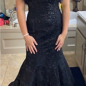 Black Sherri Hill formal dress with feather accents - worn for 2 hours