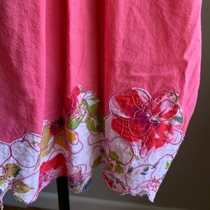 Event hot pink tank with embroidery, eyelet and smocking