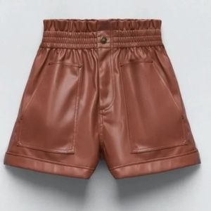 Super cute burgundy ZARA Faux Leather Shorts. Good for going out. Have been worn once and are in excellent condition.