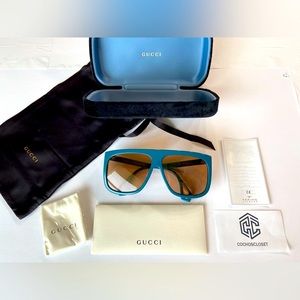 As pictured, these Gucci Sunglasses come with Gucci Case (Different colors available) Gucci Dust Bag, Gucci Cleaning Cloth and Gucci Certificate Of Authenticity.