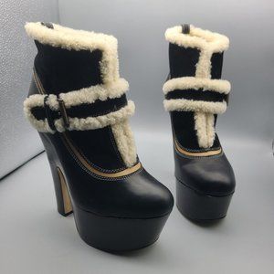 Dsquared women Ankle Boot heel platform black leather faux fur Size 9 39 new