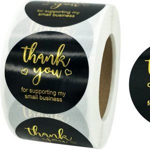Featuring eye-catching gold writing on a black background with 'Thank You for Supporting My Small Business" printed on the stickers in a gold lettering which gives the look of foil for added appeal.