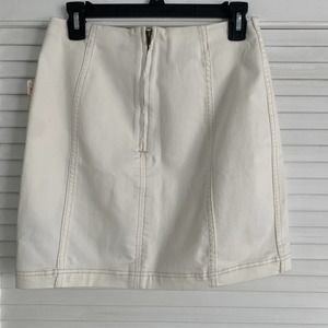 - The Free People Modern Femme White Denim Mini Skirt is our new everyday go-to! Super stretchy denim shapes this must-have mini skirt with exposed seam detailing.