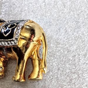 2 1/2" Crystal and Black Enamel Gold tone Elephant