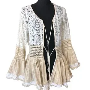 Boho flared multi lace cardigan Bohemian People Chloe Laetitia Paris
