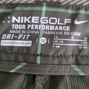 NIKE Golf Tour Performance Women's Green Plaid Dri-Fit Trouser Pants Size 12