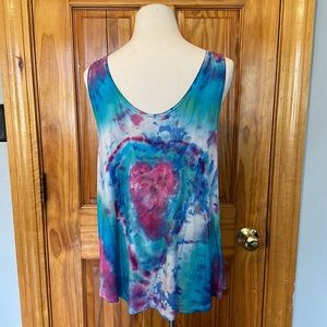 Tye dye tank top size large with heart design and fuchsia and blue dye. Tank top is new unworn only newly dyed by JRSDesignsltd. Handmade in Maine with ❤️
