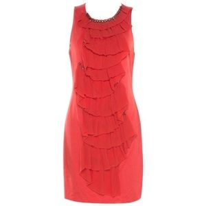 3.1 Phillip Lim Orange Stretch Knit Chiffon Ruffled Embellished Mini Dress