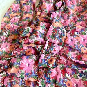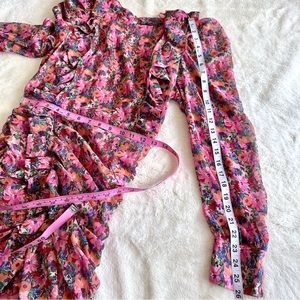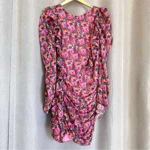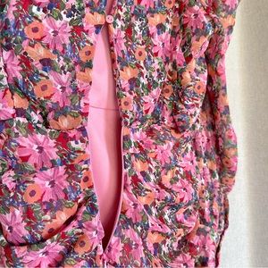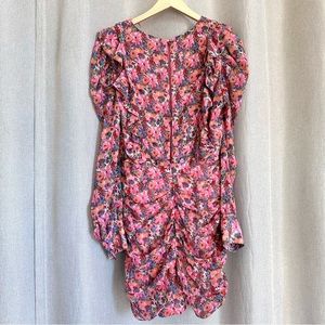 ZARA Floral Draped Mini Pink Dress Crewneck Puff Shoulders XS