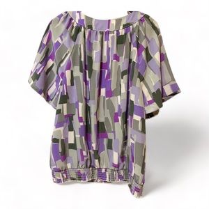 Blair Color Block Blouse (Purple, Olive & Taupe Green) - L
