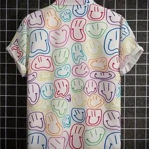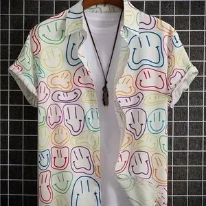 Machine wash , Men's Casual Short Sleeve Shirt With Pocket Smile Face Print For Beach Shirt