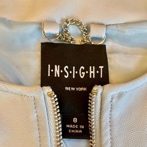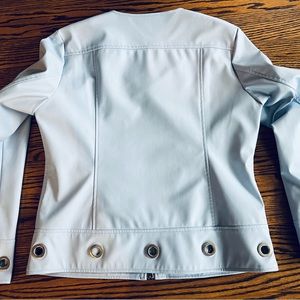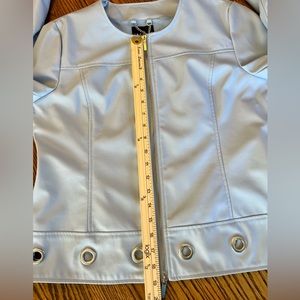 Insight Brand Faux Leather Zip Jacket Embellished Hem & Cuffs Sz 8 Light Blue
