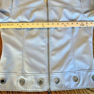 Gorgeous pastel blue full zip light jacket is in like-new preowned condition. No stains, rips, or flaws. Perfect springtime color.