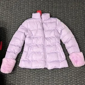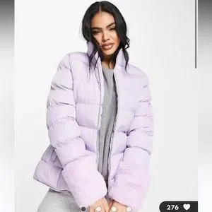 Asos Threadbare lilac purple ski snow puffer jacket faux fur cuffs