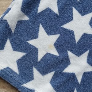 This listing is for a Mini Boden super soft navy star toweling tee in 9-10 years. This is somewhere between "play" condition & "good used condition". The stains are on the collar & white star neither the collar. There are a couple other stains on the front that were light & did not photograph well. There is also a stain on the bottom left corner on the back. I originally thought they were sauce stains until I saw the back...but knowing how my eldest was with spahetti sauce it wouldn't be a surprise. The reason I think this is somewhere between play & guc is the fact the material of the tee is unaffected. It is sooo soft (would be really great for kids w/sensory issues which is why I bought in the first place). This would be great tee to hrow on after the beach or pool.