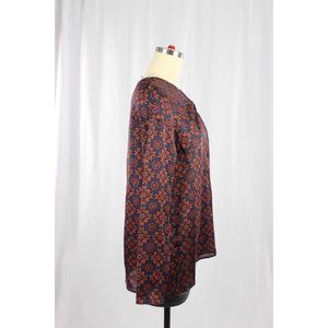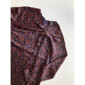 CLUB MONACO Navy Red Foulard Biscuit Print Twill Twist Front Blouse Top, Size XS