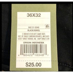 Goodfellow & Co Athletic Chino 36 x 32 Black Flat Front Slim Tapered Leg
