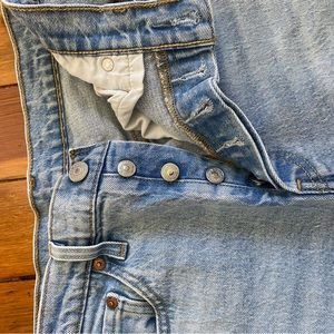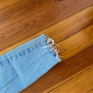 Levi’s 501 Skinny Jeans. Raw Hem (I’m 5’4” and these hit just above the ankle). Size 28. Wore a handful of times
