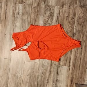 SheIn orange cutout one piece swim suit. Hook closure at neck. Right strap is adjustable. Has bra padding.