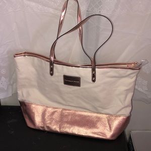 NWT. Victoria’s Secret canvas tote with rose gold