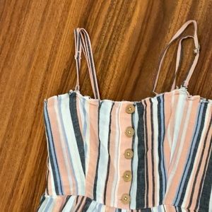 Free people dress color white,blue,black yellow and pink has buttons on the top in front has packets on both sides