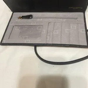 LizClaiborne leather Clutch Purse Shoulder Strap Black Leather multi pockets