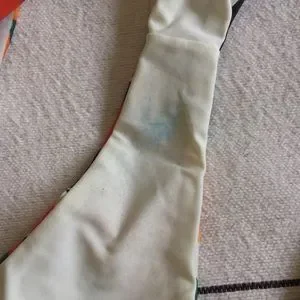 This is a stunning bikini that I only wore once. It's in near-perfect condition, but note that some very fine grains of black sand are trapped in the fabric on the bottoms even though it has been washed a few times. It does not feel uncomfortable on the skin and I believe it's just cosmetic, since the flecks are so tiny, they've just "stained" (embedded themselves into) the fabric. There is also a blue stain on the inside, likely caused by blue jean shorts worn on top. Please let me know if you have any questions! Love this suit it's just too small for me now.