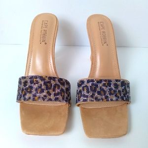CAPE ROBBIN Nude Color, Rhinestone Animal Print, Slide On Open Toe Mule Heels