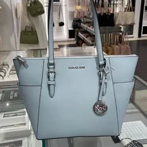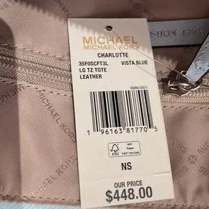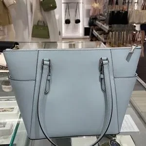 MICHAEL KORS Charlotte Large Leather Top-Zip Tote Vista Blue NWT