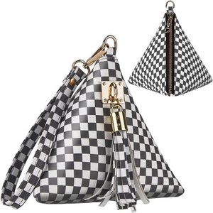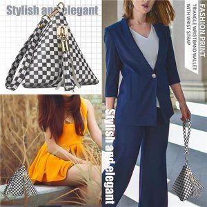 Women Leather Clutch Wallet Triangle Wristlet Purse with Wrist Strap
