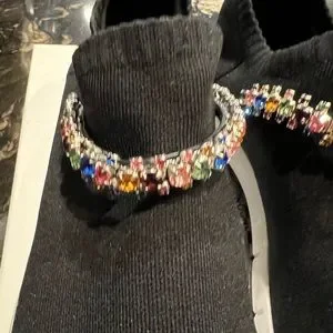 Gorgeous, sold out, Jimmy Choo Verona Crystal Sneakers. Multi colored crystals adorn a beautiful collar on these amazing sneakers. Original price $795!