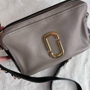 Marc Jacobs Softshot 27. If your in the GTA, please DM! GUC. Colour: cement. Original price was $640 with taxes. Small tear in interior lining (see picture) that can be easily sewn. Very functional bag for everyday use. Two separate zipper compartments. Gold hardware. Minor signs of wear. Some wiggle room with price, offers welcome!